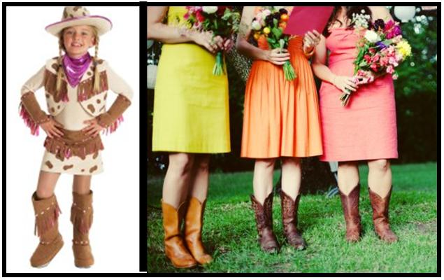 Cowboy boots are fun to wear when you're in second grade, but even better at your best friend's shotgun wedding.