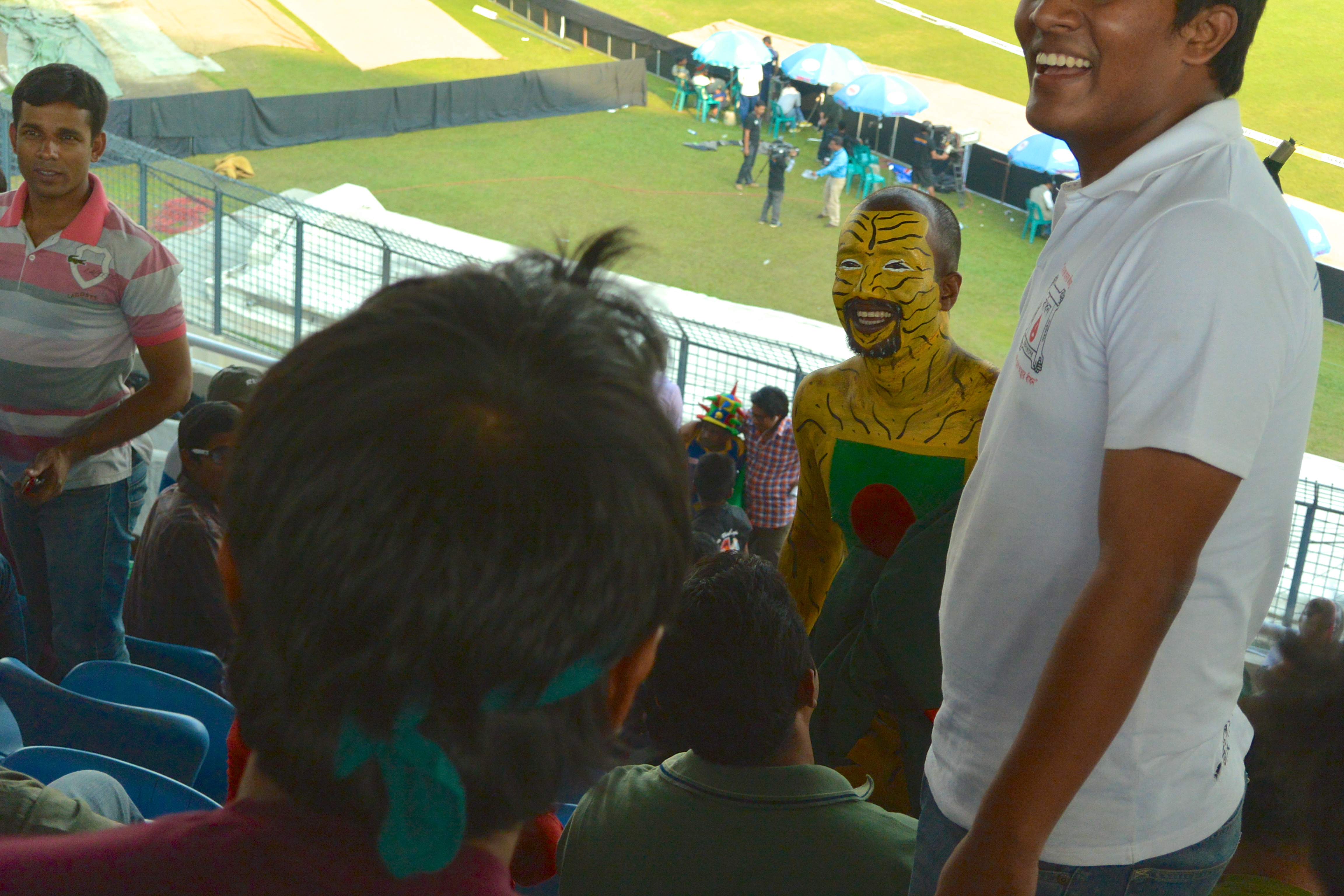 – My daughter Gemma was featured prominently on the JumboTron during the match. I am also told the telecast had some zoom-in shots of the only blonde-haired, blue-eyed American baby girl in the stadium. We even received an up-close and personal introduction to the most famous Bangladesh national cricket team fan and de facto mascot, The Tiger Man.